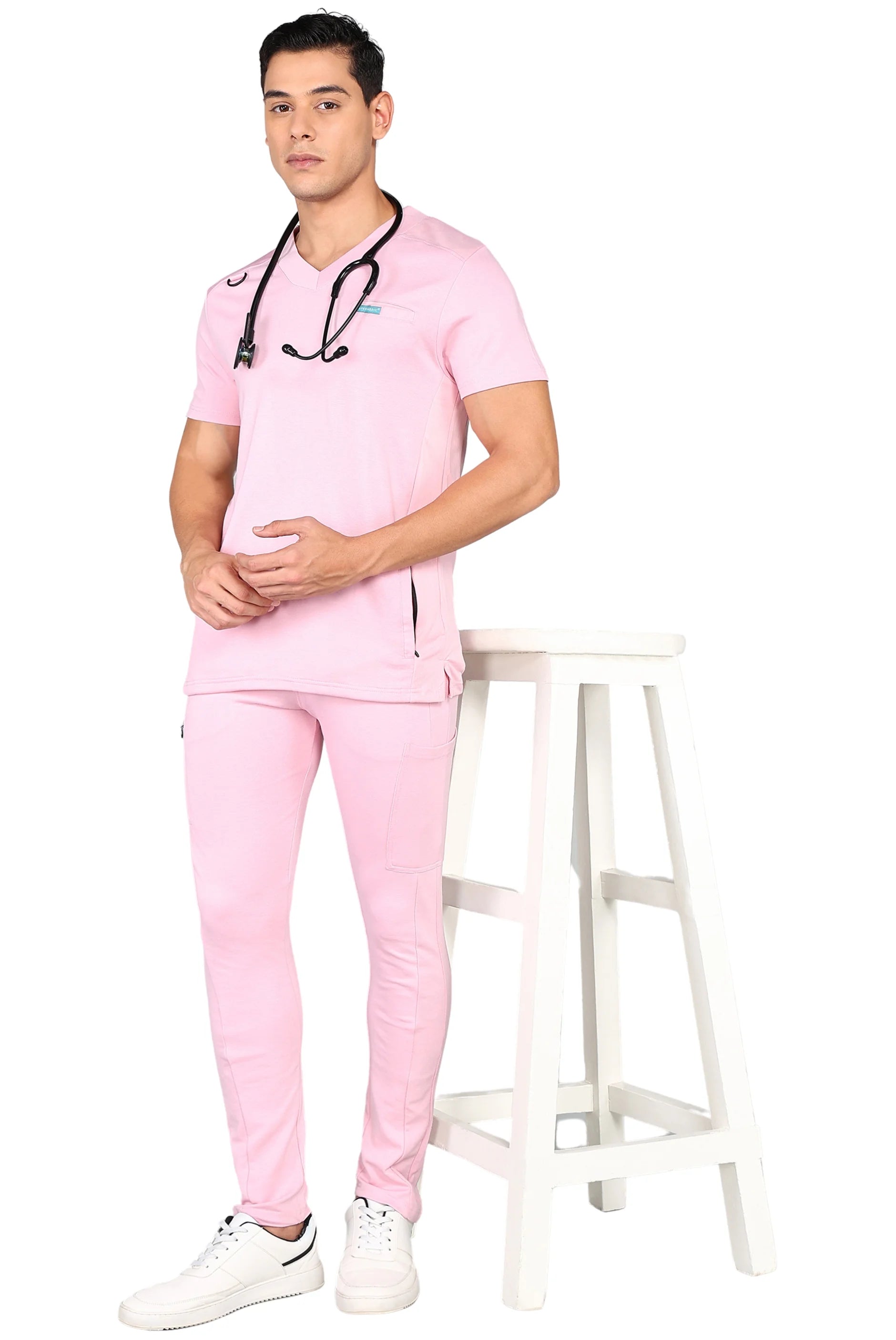 4-Way Stretchable Men's Pink Top & Standard Bottom Scrub Set