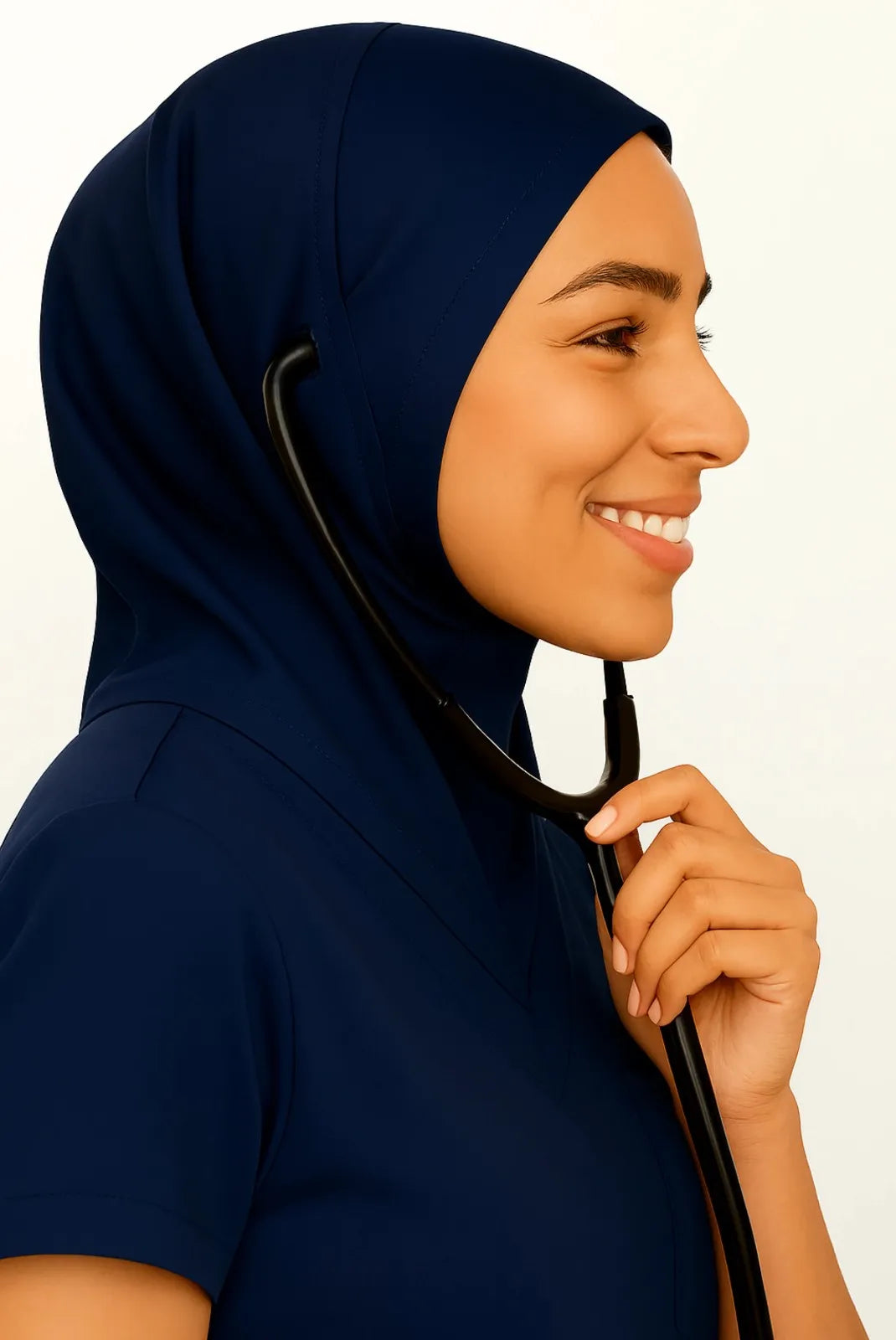 Navy Blue Scrub Hijab with Stethoscope Slit For Women