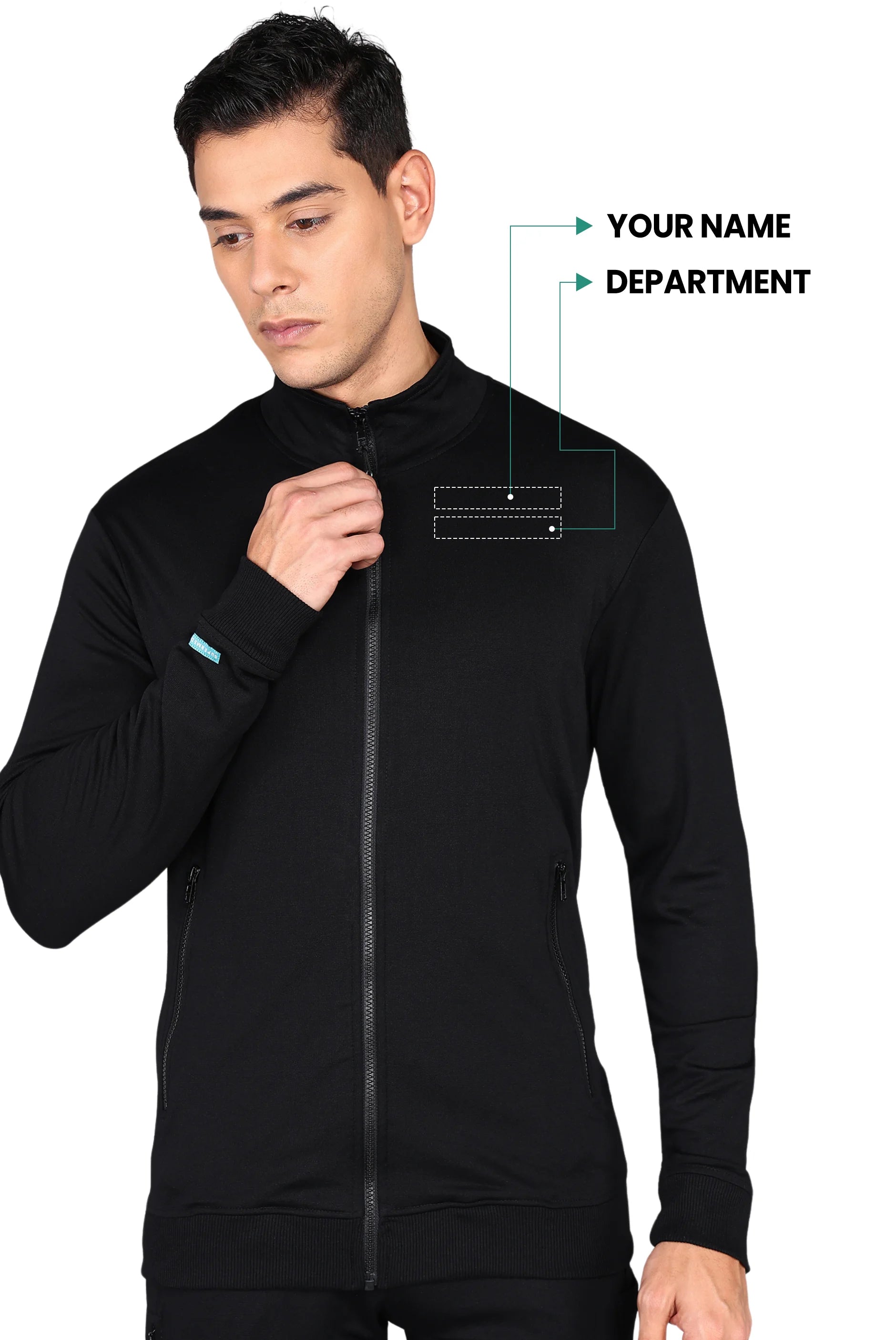 Black Turtle Neck Scrub Jacket for Men with 4-way Stretch
